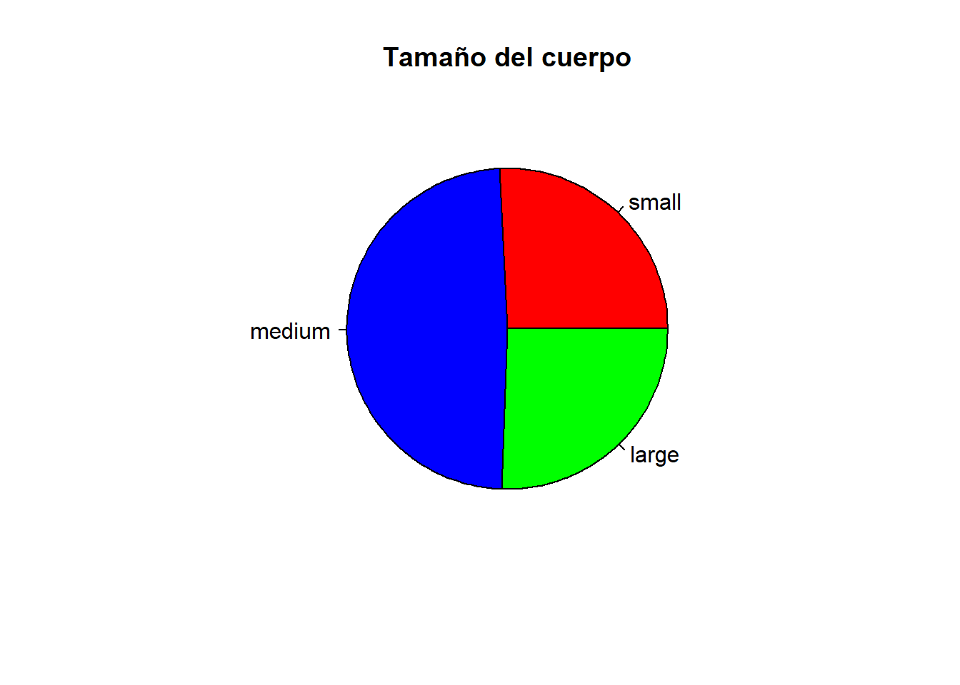 # Diagrama de sectorespie(n, col=c("red","blue","green"), main="Tamaño del cuerpo")