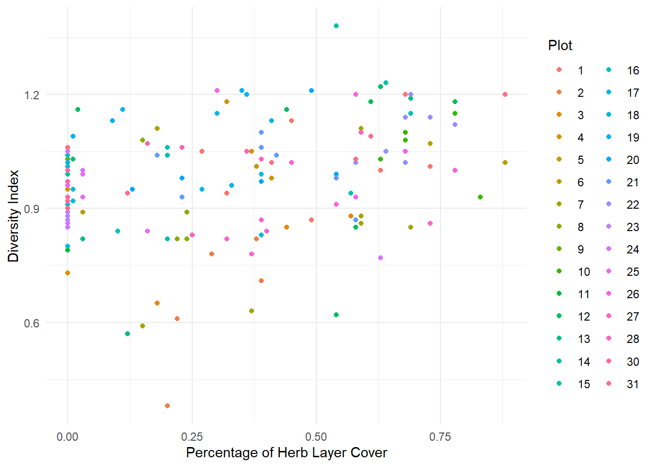 Formula: DivIndex ~ 1 + HerbLayer + Litter + (1 | Plot)