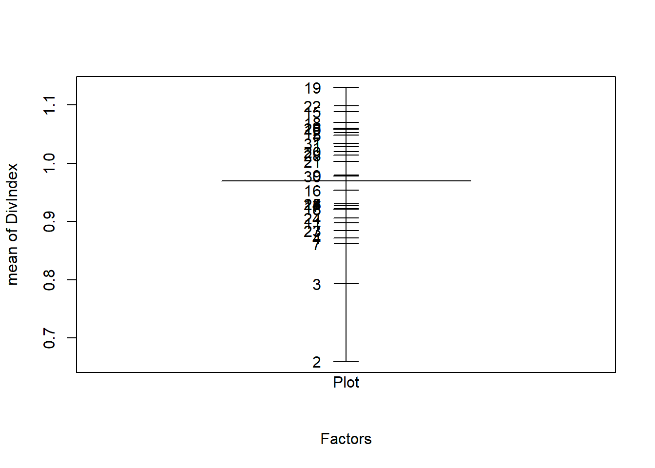 DivIndex: Variable of interest. Lower values of this index indicates less abundance of different species.