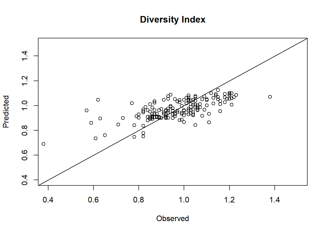 c) Compare observed and predicted diversity index values