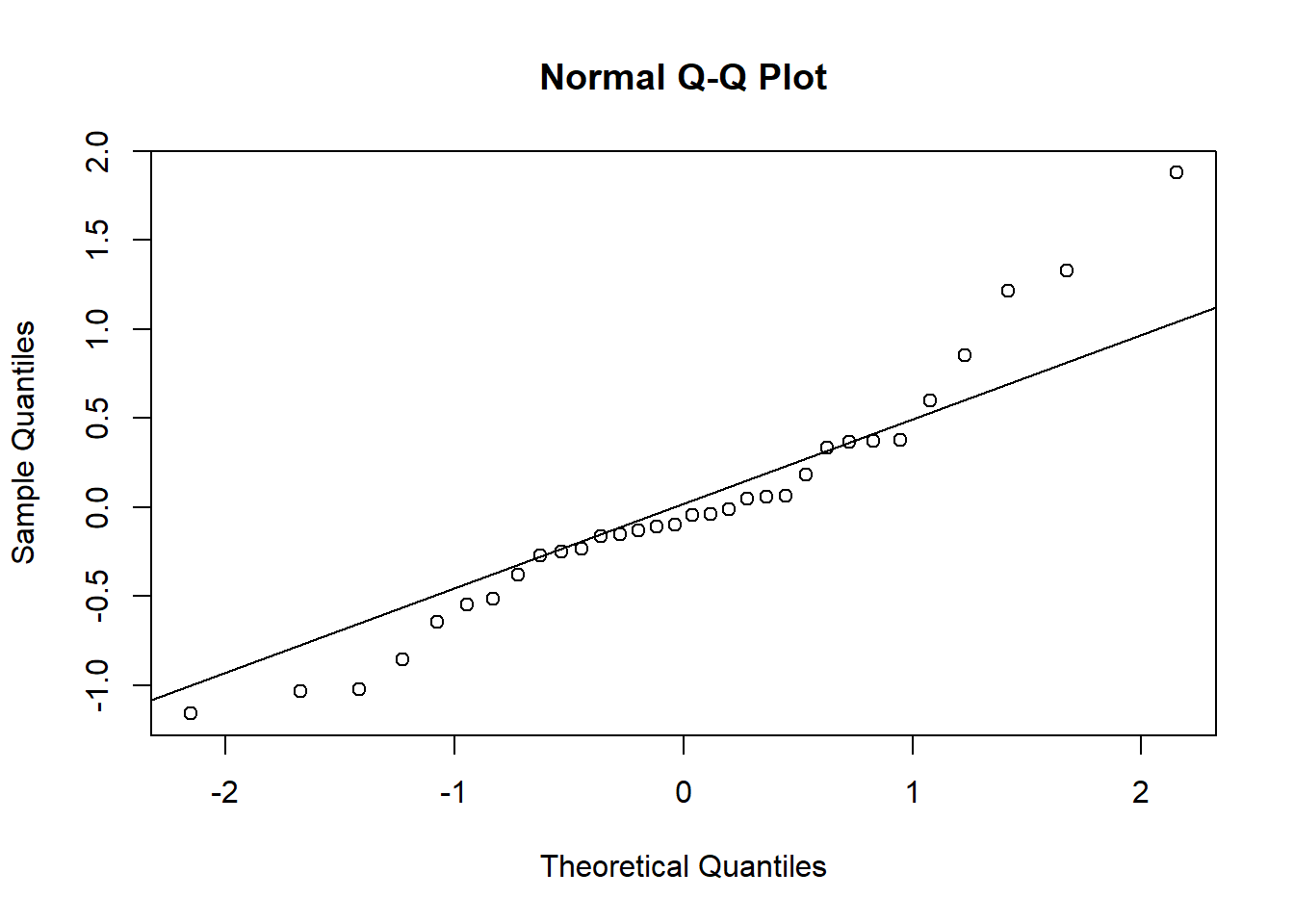 u <-unlist(ranef(Model)$Plot)qqnorm(u)qqline(u)